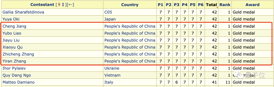 中国团队6名小伙子以全员满分的绝对优势拿下第一名,获得6枚金牌!
