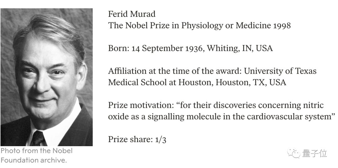 1998年,穆拉德因此获得诺贝尔生理学或医学奖。