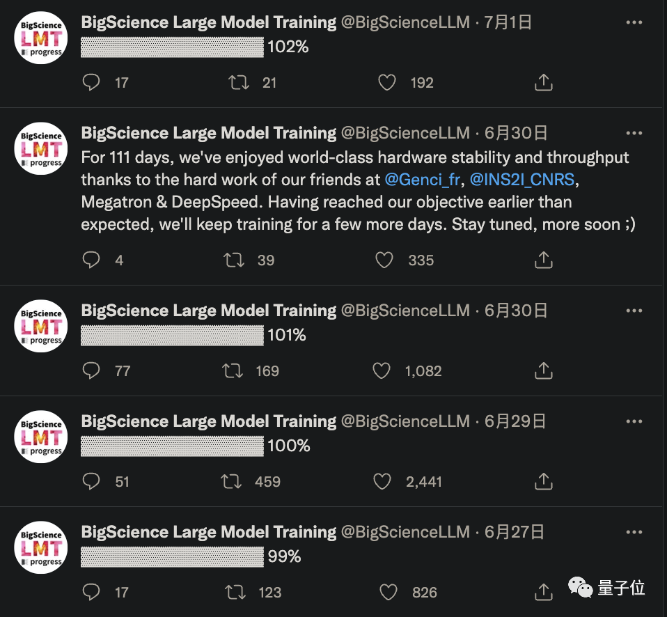 相关推特账号从3月14日起,每天记录BLOOM的进度。