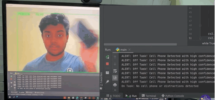 他编写出一套使用物体检测API的算法,来监督自己专注学习。