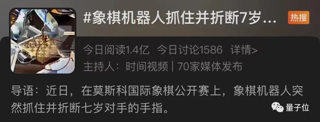 [1]https://www.theguardian.com/sport/2022/jul/24/chess-robot-grabs-and-breaks-finger-of-seven-year-old-opponent-moscow[2]https://weibo.com/6250824982/LDTnf8jJL?type=comment[3]https://twitter.com/Kasparov63/status/1551253025712443392[4]https://www.popsci.com/murder-robot-mundane-industrial-accident/