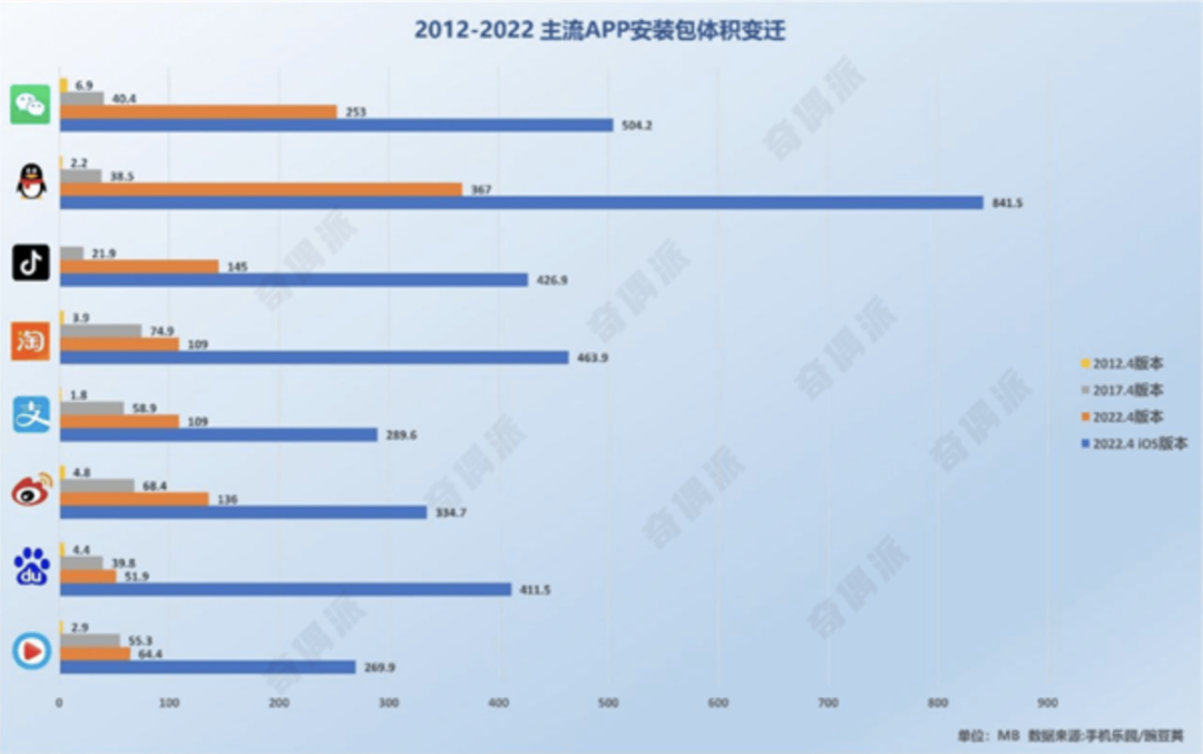 事实上,除了微信,近年来许多APP的安装包都在变大。