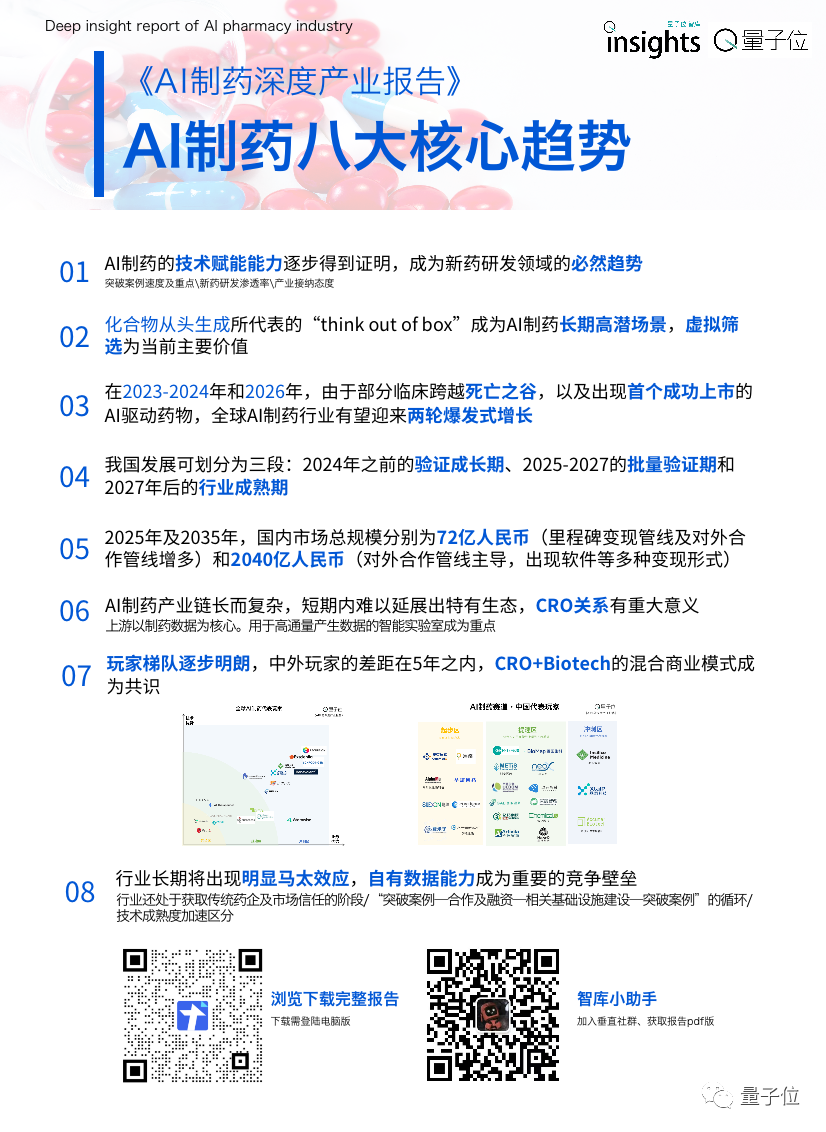 采访数十家机构并深入调研后,量子位智库撰写了《AI制药深度产业报告》,扫描下方二维码可下载完整报告。