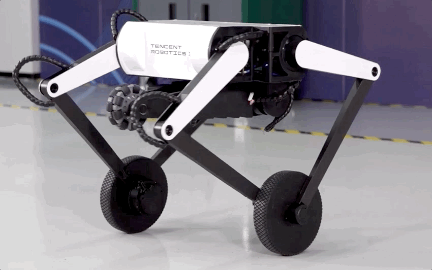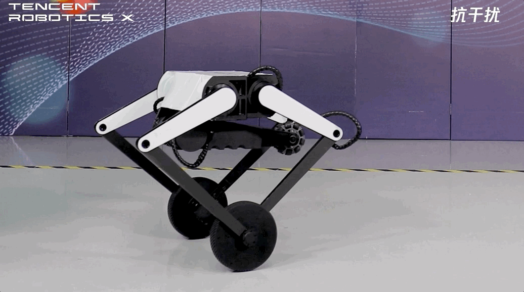 轮式结构负责速度,腿部来保持平衡。