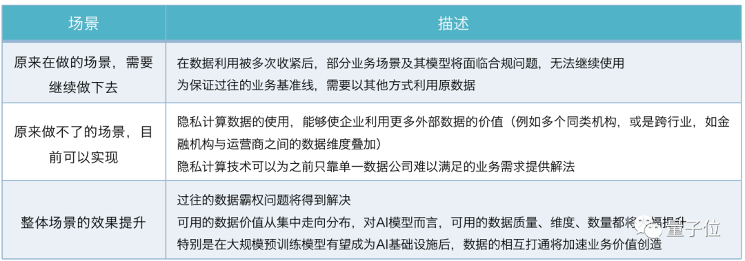 从本质来讲,隐私计算可以满足合规需求(跨境数据传输、个人数据的利用等),对应第一类场景。