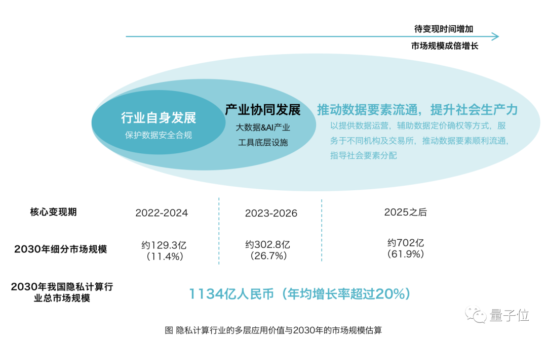 经量子位智库计算,基于隐私计算的广义市场规模有望达到千亿级别。