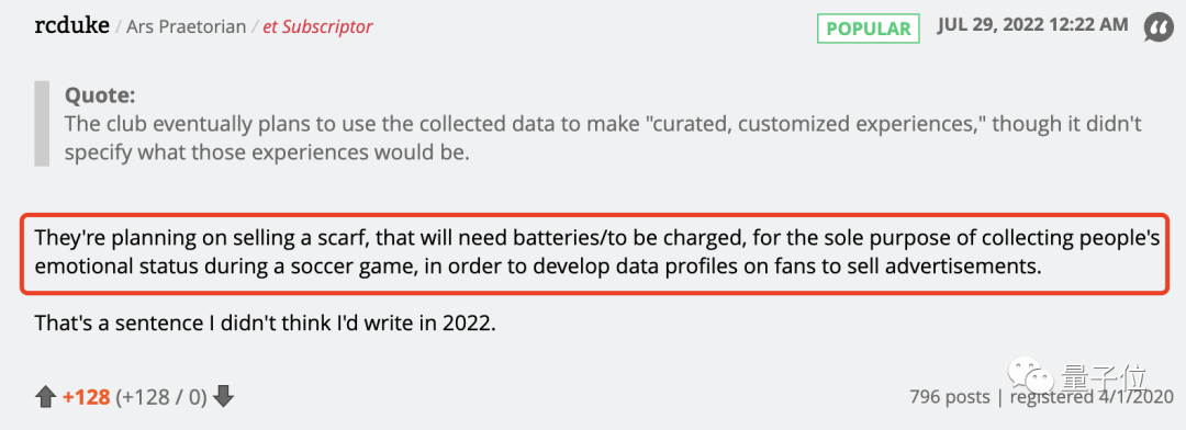 说到隐私,有人指出,这条围巾可能是想收集球迷数据来开发广告。