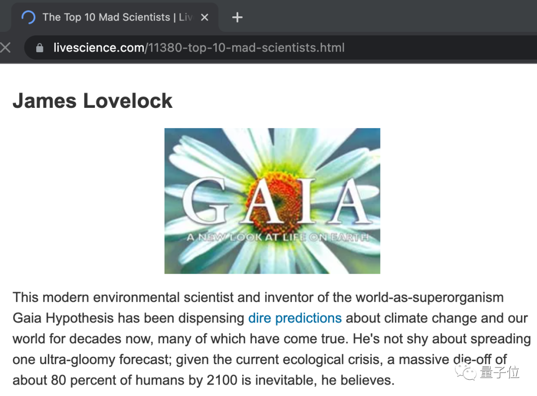 参考链接:[1]https://twitter.com/jonathanwatts/status/1552287829870485505[2]https://news.ycombinator.com/item?id=32250694[3]https://www.livescience.com/11380-top-10-mad-scientists.html[4]https://blog.sciencemuseum.org.uk/james-lovelocks-greatest-epiphany-quest-for-life-on-mars/[5]https://www.ncbi.nlm.nih.gov/pmc/articles/PMC1365902/?[6]https://www.youtube.com/watch?v=2tdiKTSdE9Y[7]https://theconversation.com/james-lovelock-the-scientist-inventor-who-transformed-our-view-of-life-on-earth-187870[8]https://www.newscientist.com/article/mg24332401-000-james-lovelock-at-100-the-creator-of-gaia-theory-on-humanitys-future/