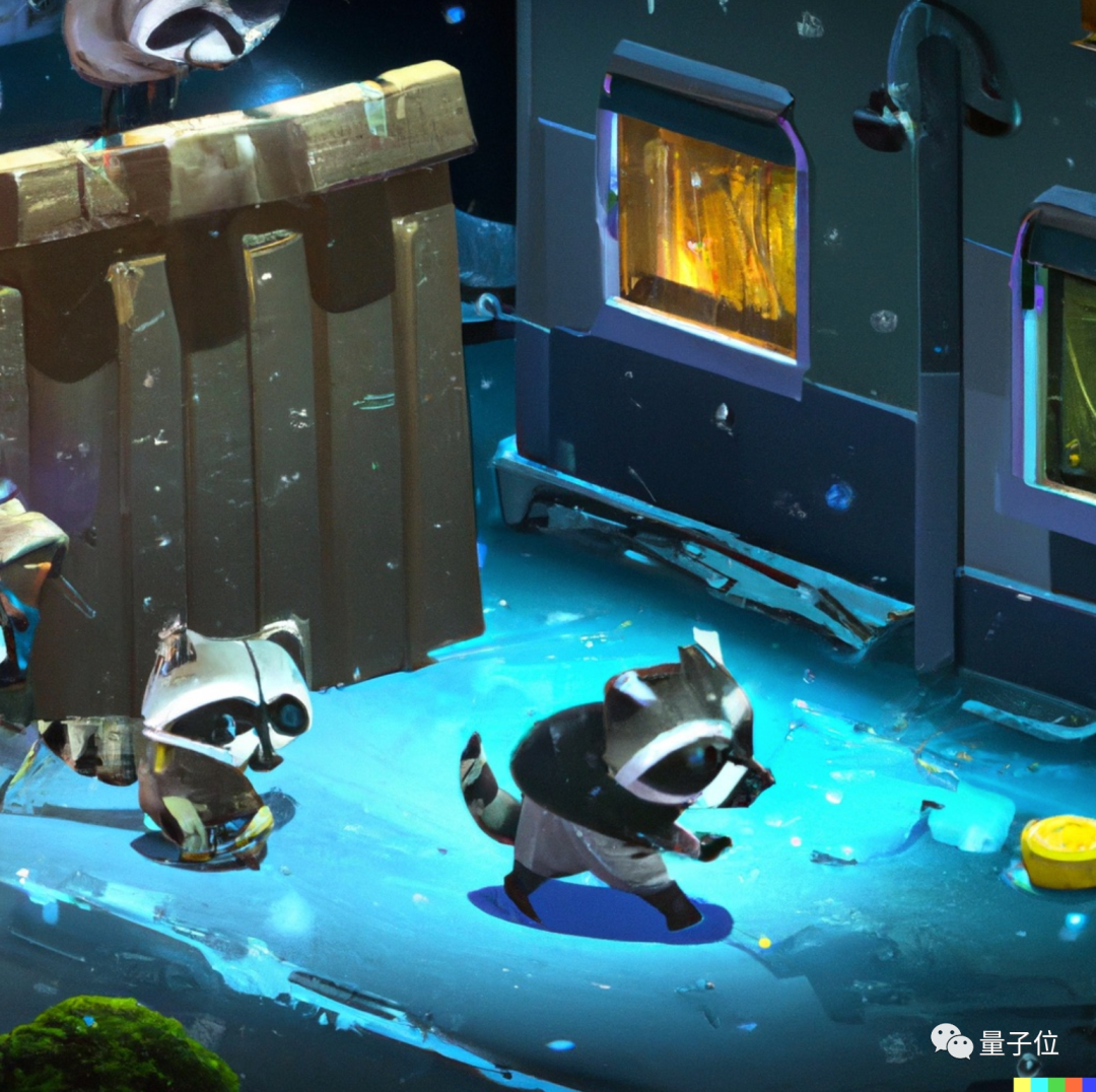 画面里,两只鬼鬼祟祟的浣熊,在深夜的大街上游走,一副随时准备作案的样子。