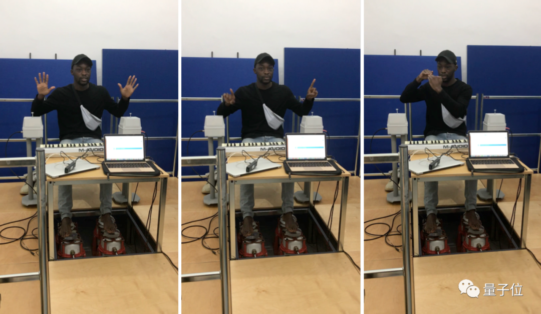 研究团队将他的一首歌曲导入设备中,将吉他、踢踏鼓和小军鼓的声音转换为振动,让SignKid光脚踩在两个振动器上,通过他的脚跟和前脚来感受音乐。