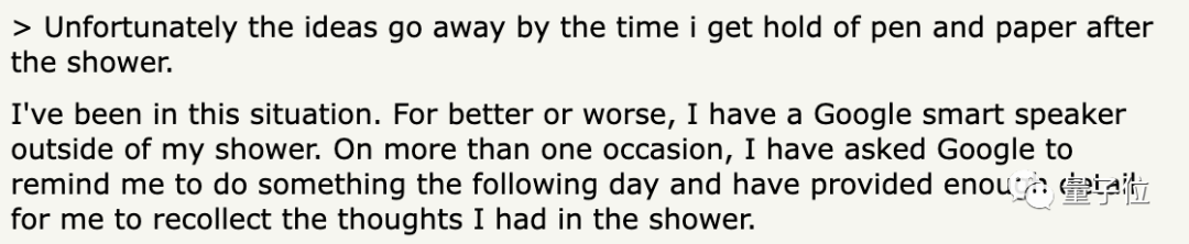 有网友提出:自己在洗澡时可能会突然想出一个好点子,可惜过会儿就忘了。
