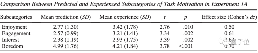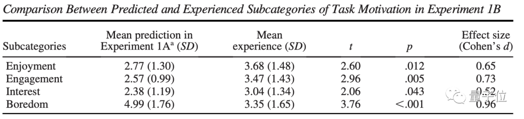 具体而言,实验一共设置了4个评价方向:享受、参与度、兴趣和厌烦;每个方向又分为3个子项目(如:“享受”包括:“我非常喜欢等待”等),共计12个评价对象。