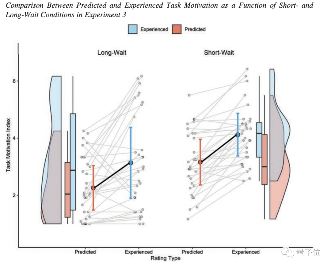 共有63名大学生参加了这项实验,他们在进小黑屋前都预估了自己在2种等待时长下的感受,然后被随机分到长时间等待组(20min)和短时间等待组(3min)。