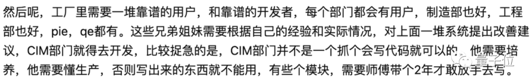 据知乎匿名用户介绍,并不是会写代码的就能去CIM部门,而是需要对芯片生产流程非常了解,否则写出来的东西不能用。