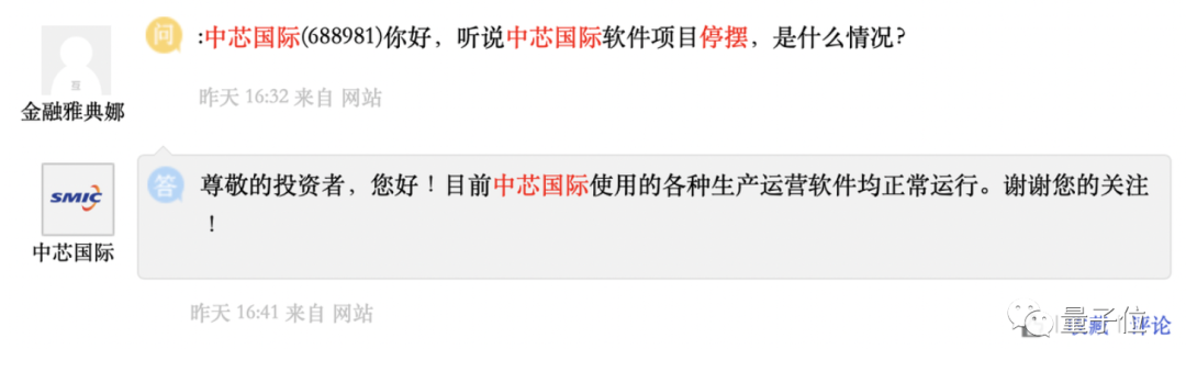 随后,有网友在上证e互动就此事问中芯国际,得到回应称“目前使用的各种生产运营软件均正常运行。”