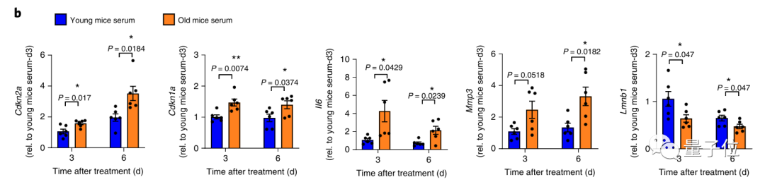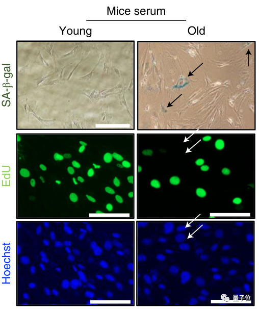 他们分别在年轻/衰老小鼠血清、年轻/衰老人类血浆环境下,培养小鼠和人类的原代细胞。