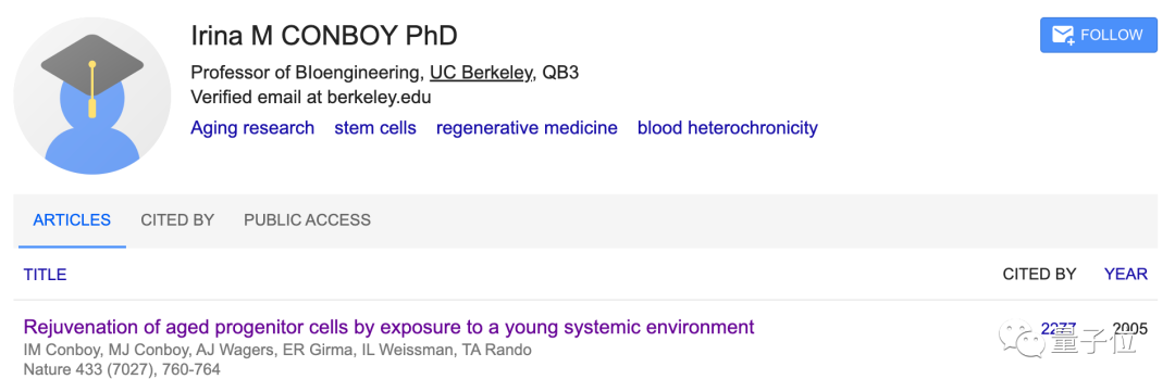 而这项研究的通讯作者Irina M. Conboy,当年曾以第一作者身份,发表了“换血抗衰老”领域的奠基之作。