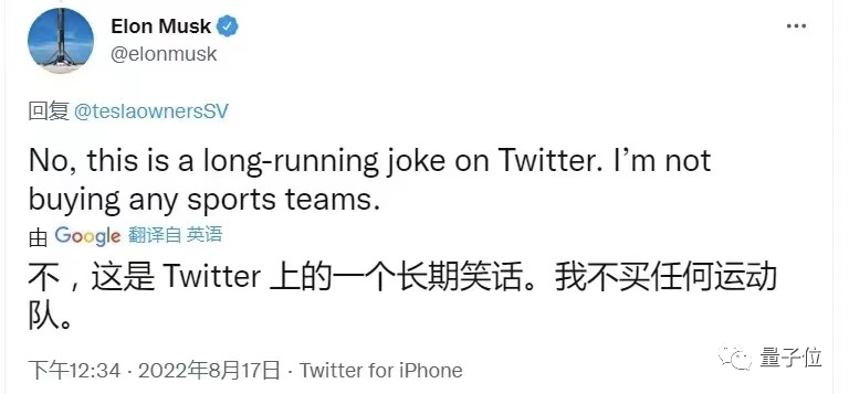 特斯拉CEO马斯克在twitter上“辟谣”了自己打算收购曼联的计划。
