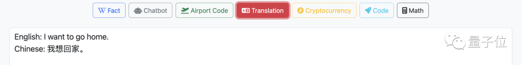 目前可以实现的功能有:询问事实,直接聊天,航班代码,多语言翻译,加密货币,代码,计算数学……