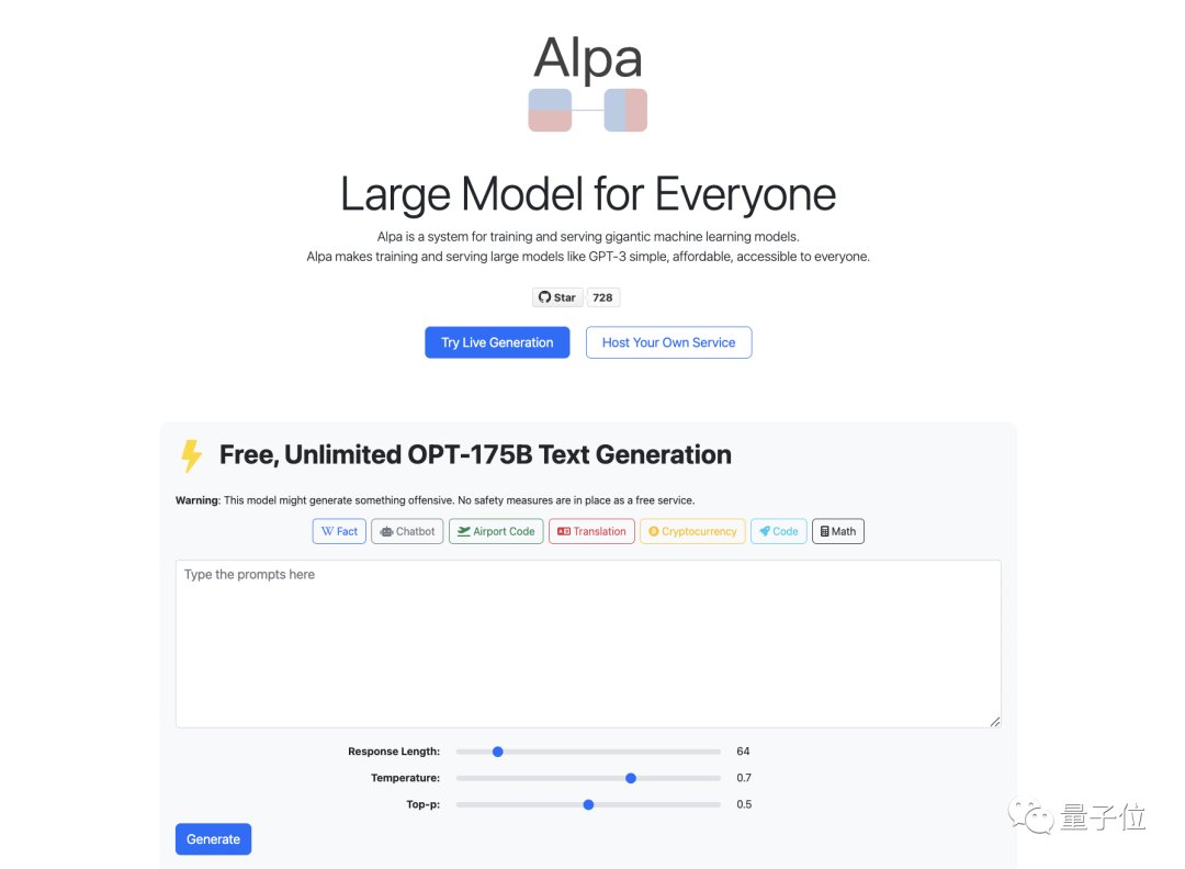 如果用户现在就想尝试更多的超参数,在网站上体验不同的生成技术,可以通过使用团队做出的一个系统Alpa(用来训练和服务大模型),自己增加相关服务的设置。