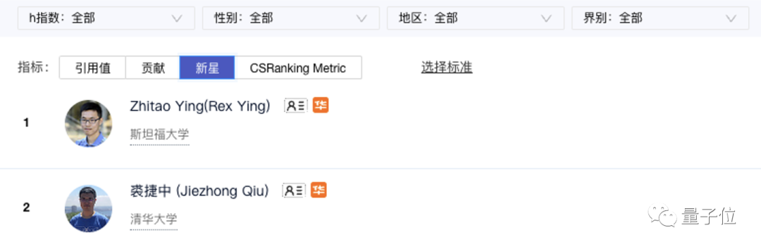 有趣的是,据AMiner AI 2000学者排名预测,Zhitao Ying 和裘捷中在AI 2000学者排名单上恰好分别位列 2018-2022 年数据挖掘领域新星的前两名。