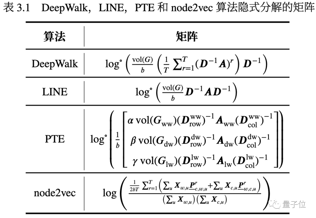 通过结合对 Word2Vec 和图上随机游走的理论研究,裘捷中试图对图表示学习算法进行理论推导,证明可以从矩阵分解的角度来统一此类算法的工作机制,并开发了一套加速方法,从而将此类算法拓展到大型图表示学习的任务中。