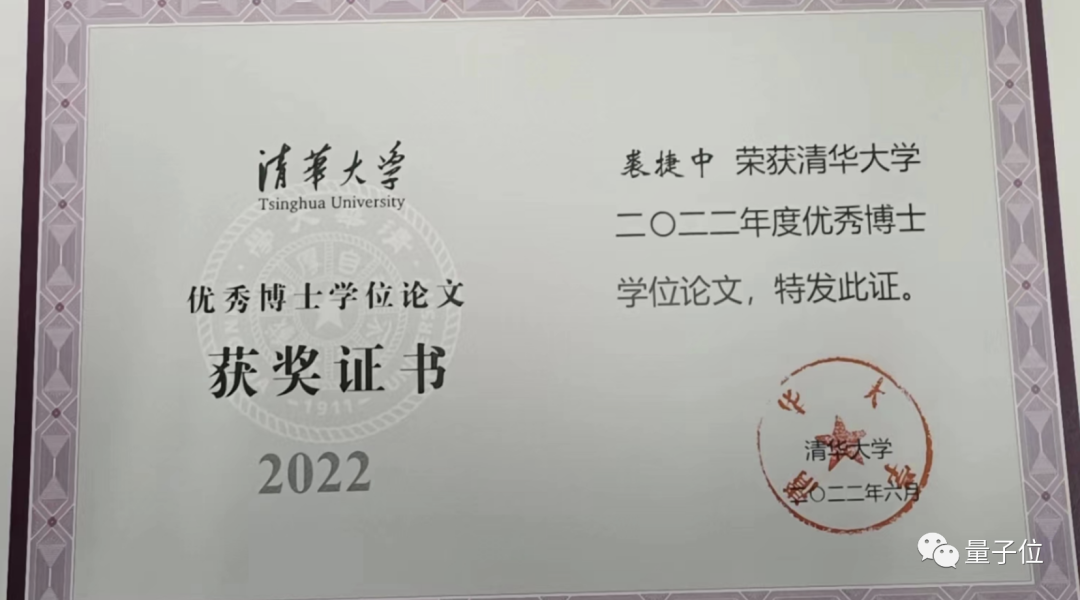 △裘捷中获得清华大学 2022 年优秀博士学位论文