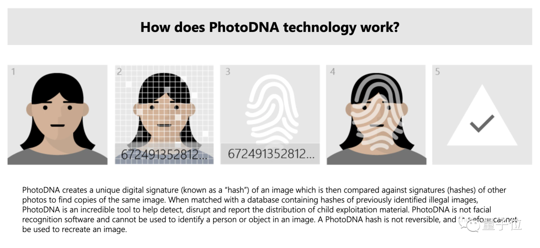 它建立了一个虐童照片数据库,把每个人电子相册的照片和数据库里的照片对比,就算照片有细微不同,也能找出传播虐童图像的用户。