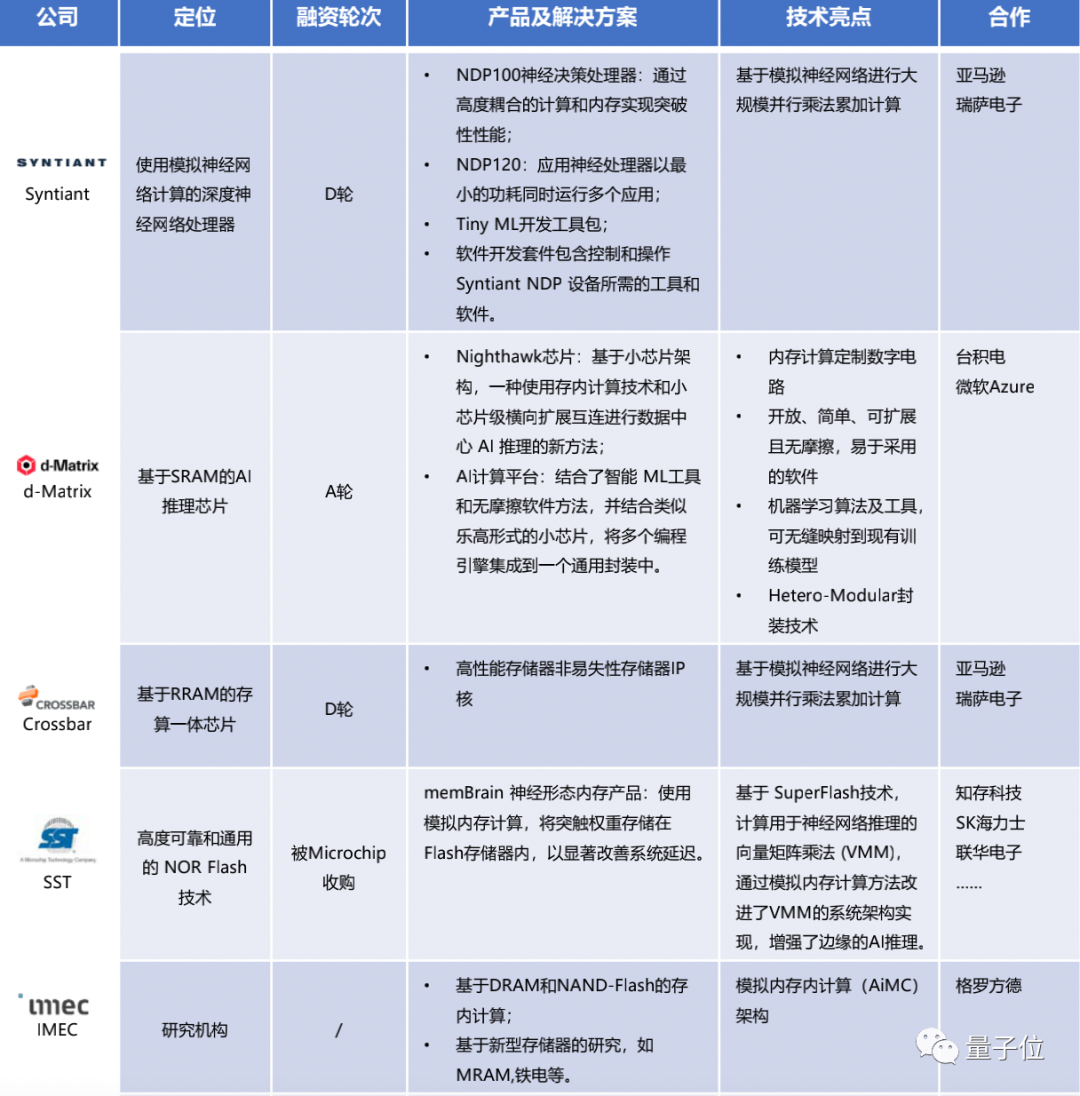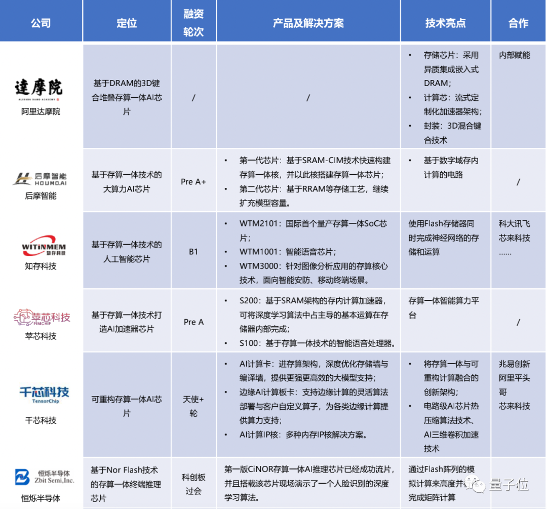 其中九天睿芯专注于神经拟态感存算一体芯片研发,后摩智能做大算力AI芯片,千芯科技聚焦大算力可重构存算一体芯片的架构设计,苹芯科技在基于SRAM做存内计算加速器……
