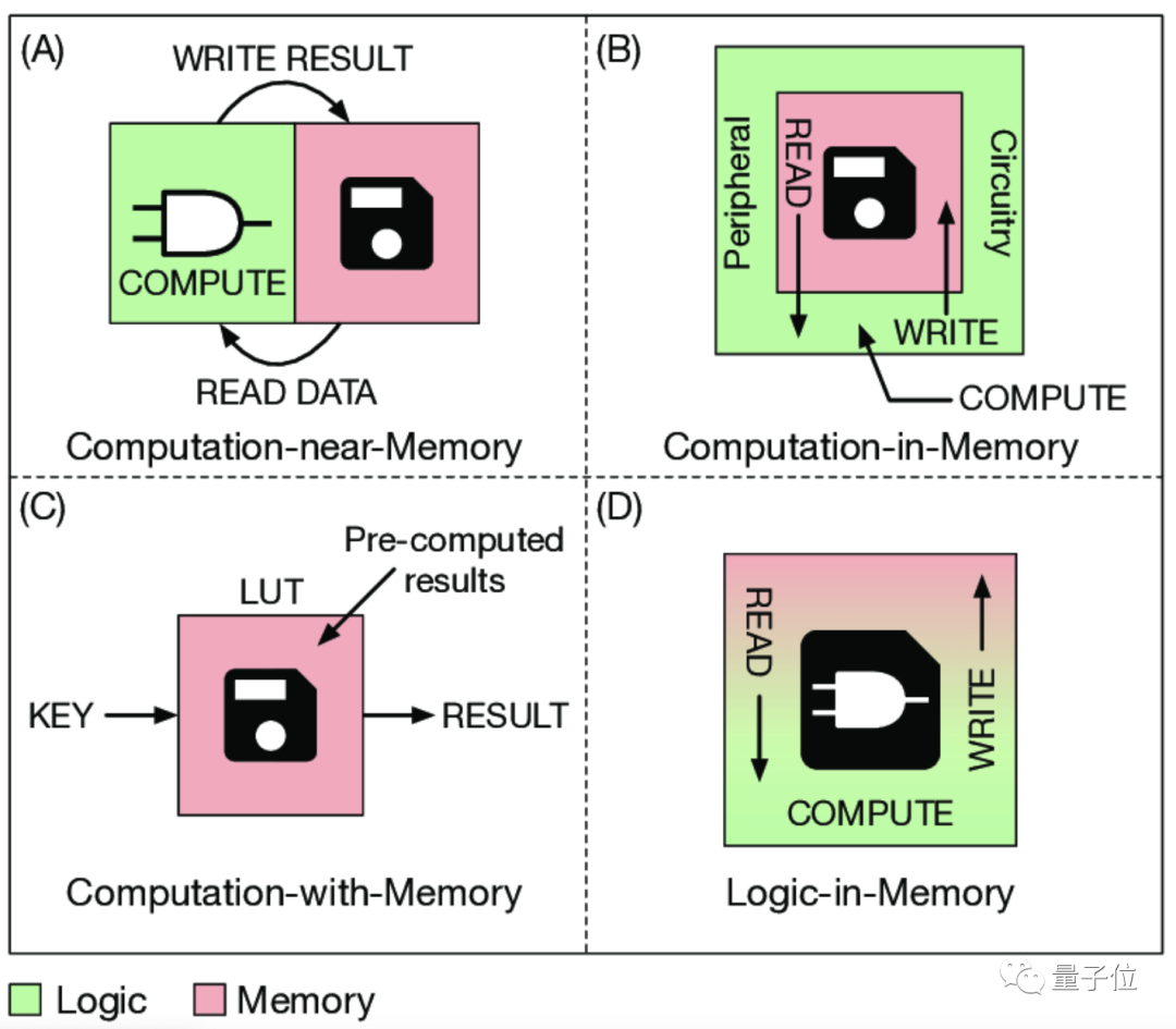 而依照计算单元与存储单元的关系(距离)划分,目前存算一体的技术路线大致可分: