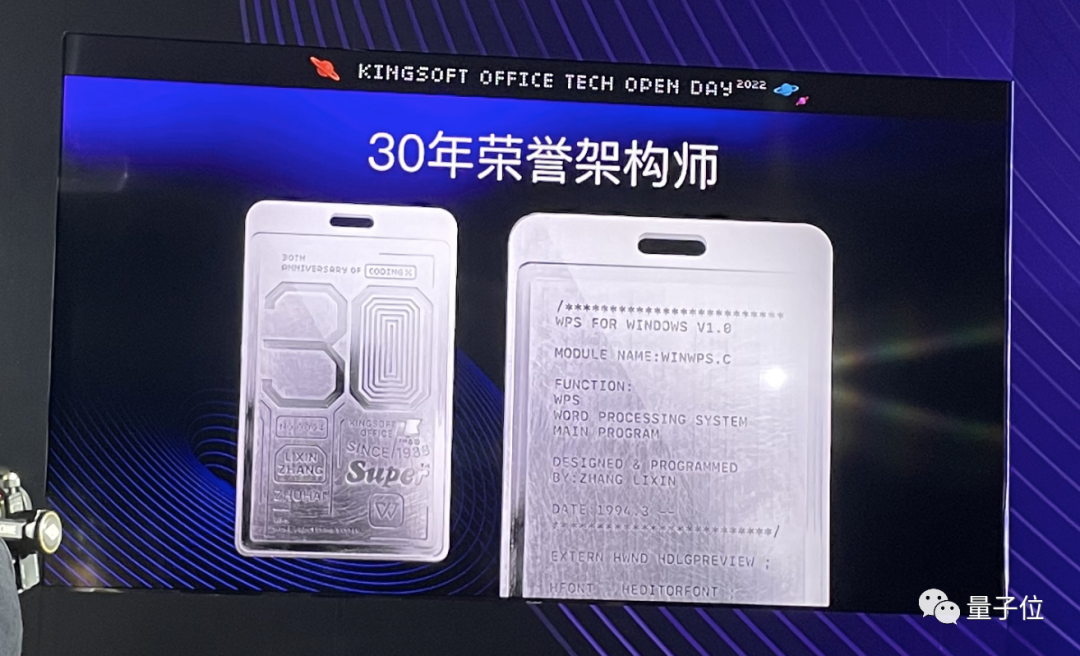 今年是章立新加入金山的第三十周年,金山办公为此给他颁发了“30年荣誉架构师”的特别版纪念工牌。