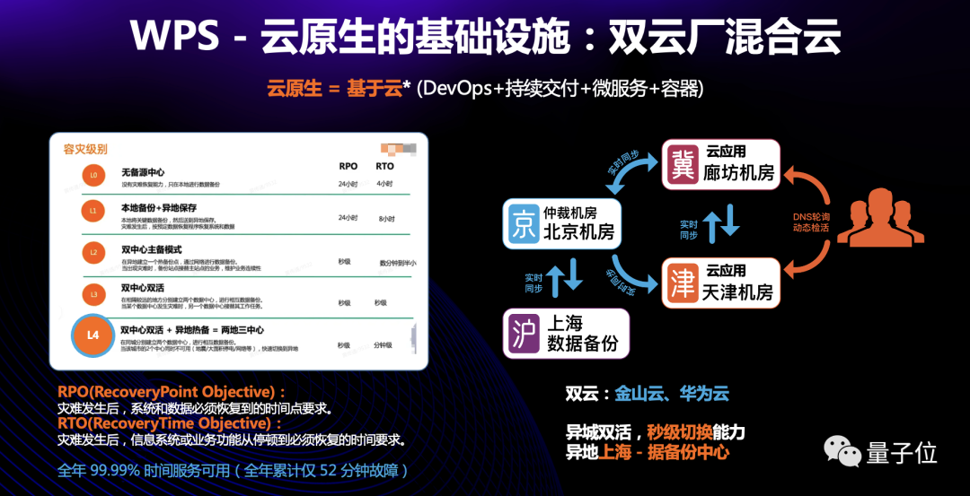 为此,黄传通还强调称,金山办公近年来正大力投入云原生的安全基础设施建设,着手建设“两地三中心”(生产中心、同城容灾中心、异地容灾中心)。