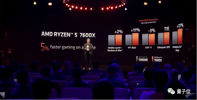 根据演示F1 2022结果,Ryzen 7600X比Core i9-12900K快11%,整体平均快5%。
