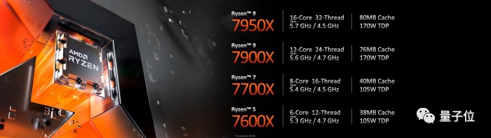 发布的4款Ryzen 7000系列CPU,分别是Ryzen 9 7950X、Ryzen 9 7900X、Ryzen 7 7700X和Ryzen 5 7600X。