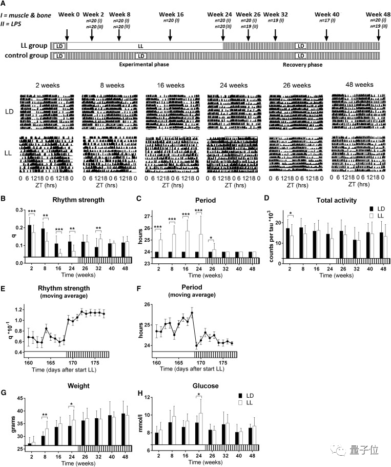 实验中,研究人员将134只小鼠在连续24小时光照下暴露了24周;又设立了24周的恢复期,这阶段,小鼠们的连续光照暴露时间缩短至12小时。