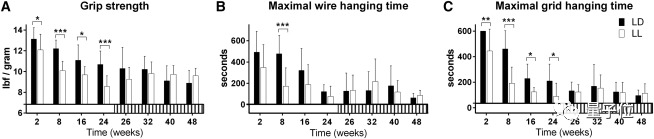 是的,长时间光照暴露,还会影响生物的力量——衡量标准是握力测试和小鼠紧握杠铃的能力。