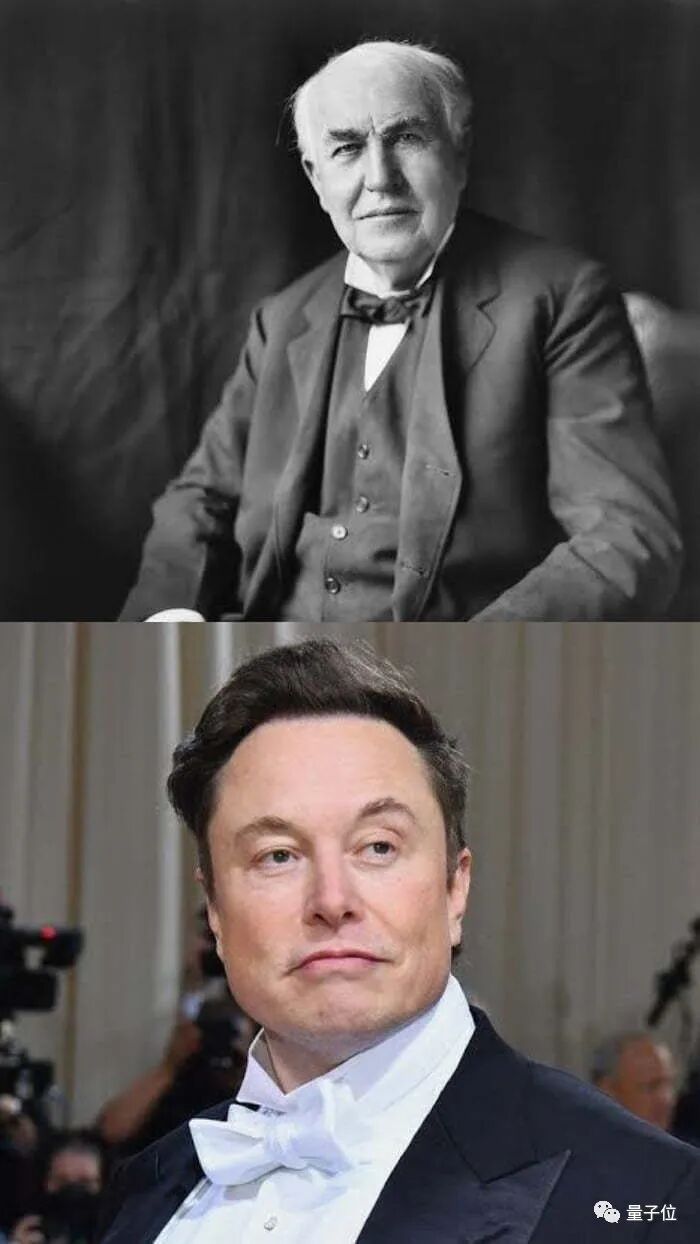 有网友指出,马斯克长相有点像爱迪生,还Po了下面这张图——