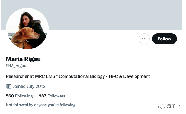 二作Maria Rigau ,同样Base在西班牙,是巴塞罗那超级计算中心 (BSC)的博士,专业为生命科学,主页头像显示,这是一位蛮喜欢狗狗的女研究者。