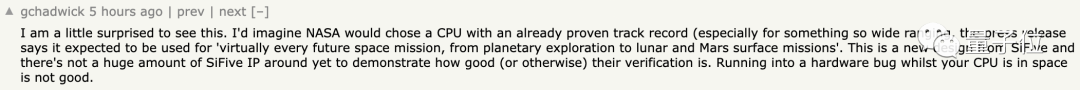 消息一传出,有网友表示惊讶:还以为NASA会选择一个已被检验过的CPU,没想到选了RISC-V。