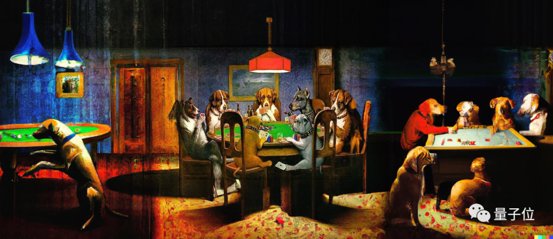 一句话,就能直接打破画框,把《狗玩扑克》背后的狗狗赌场给还原出来: