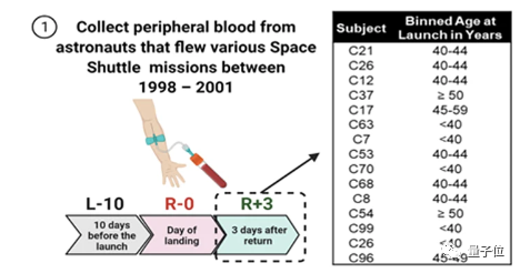 这些宇航员的血液样本来自不同3个时段,包括了:上天前10天,返回地球着陆当天及返回后3天。