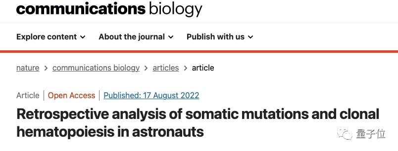 参考链接:[1]https://www.nature.com/articles/s42003-022-03777-z[2]https://futurism.com/neoscope/scientists-genetic-mutations-every-astronaut-blood-sample[3]https://www.newswise.com/articles/researchers-find-spaceflight-may-be-associated-with-dna-mutations-and-increased-risk-of-developing-heart-disease-and-cancer