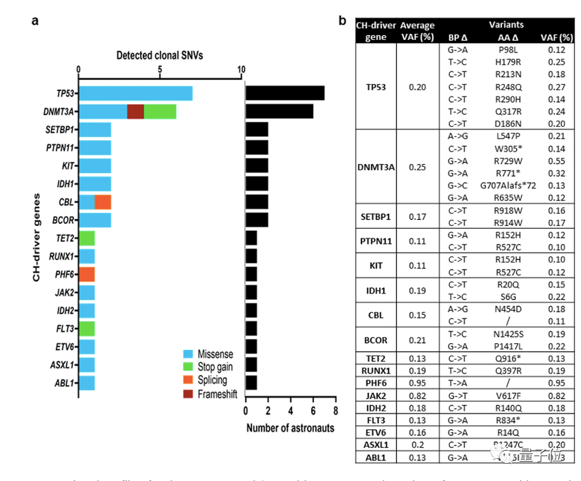 不过,科学家也指出,上述大部分突变影响不算很大,数据统计看程度集中在从0.10%到0.95%VAF,还算不上CHIP范畴,未必对长期健康带来严重危险,但需受试人保持定期体检,尤其那些即将执行月球任务的宇航员要注意。