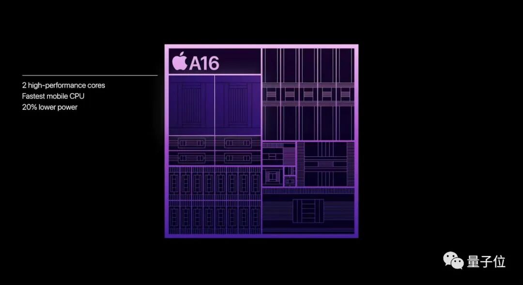 另一大亮点,就是A16仿生芯片的亮相了。此次发布会所着笔墨不多,核心主要在电源效率、显示和摄像头三个方面的突破。