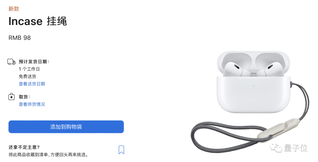 值得一提的是,由于这次的充电盒有了挂绳孔,与AirPods Pro2一起发布的,还有一根挂绳,emm……价格98元。