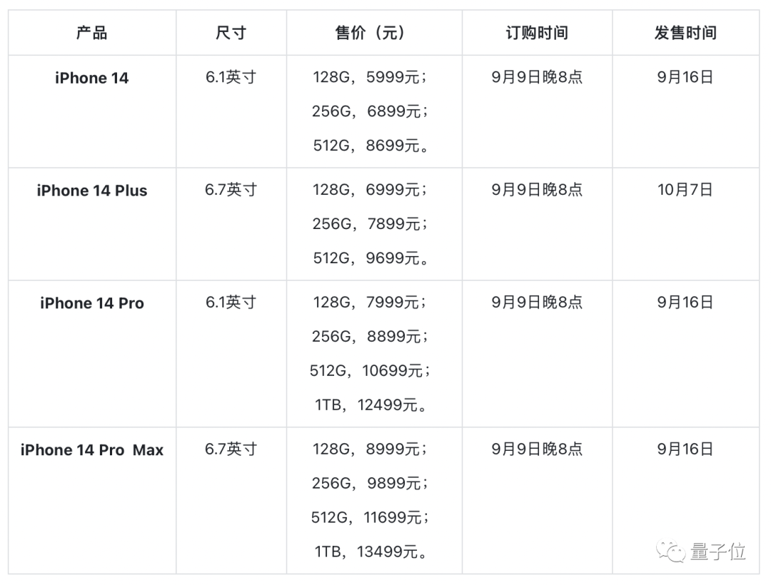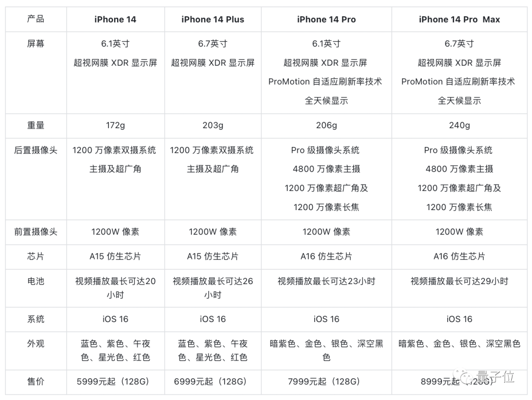 最后来说说价格吧,iPhone 14起价799美元,跟上一代齐平;iPhone 14 Plus售价899美元。