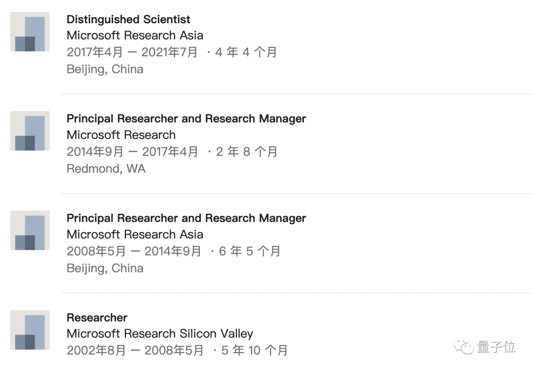 一路从研究员 、首席研究员 、微软亚洲研究院常务副院长,微软亚洲研究院院长,走到了今天的微软全球资深副总裁。