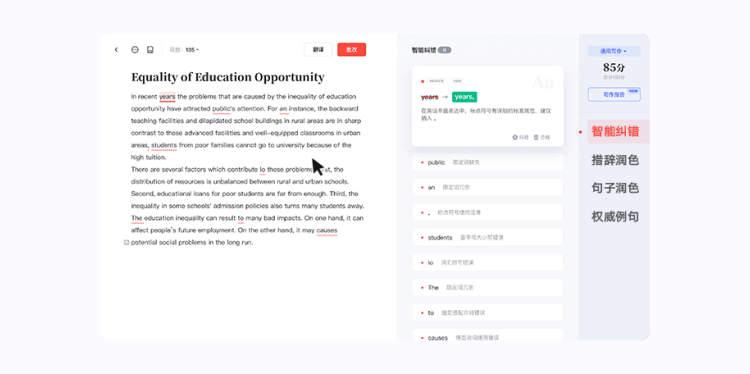 就这还没完,甚至在你写论文的时候,有道词典9也能派上用场:其“AI英文写作批改”功能,能够智能识别语法错误、提供例句参考、“母语级”句子润色,还能自动标注引用来源、生成参考文档信息……