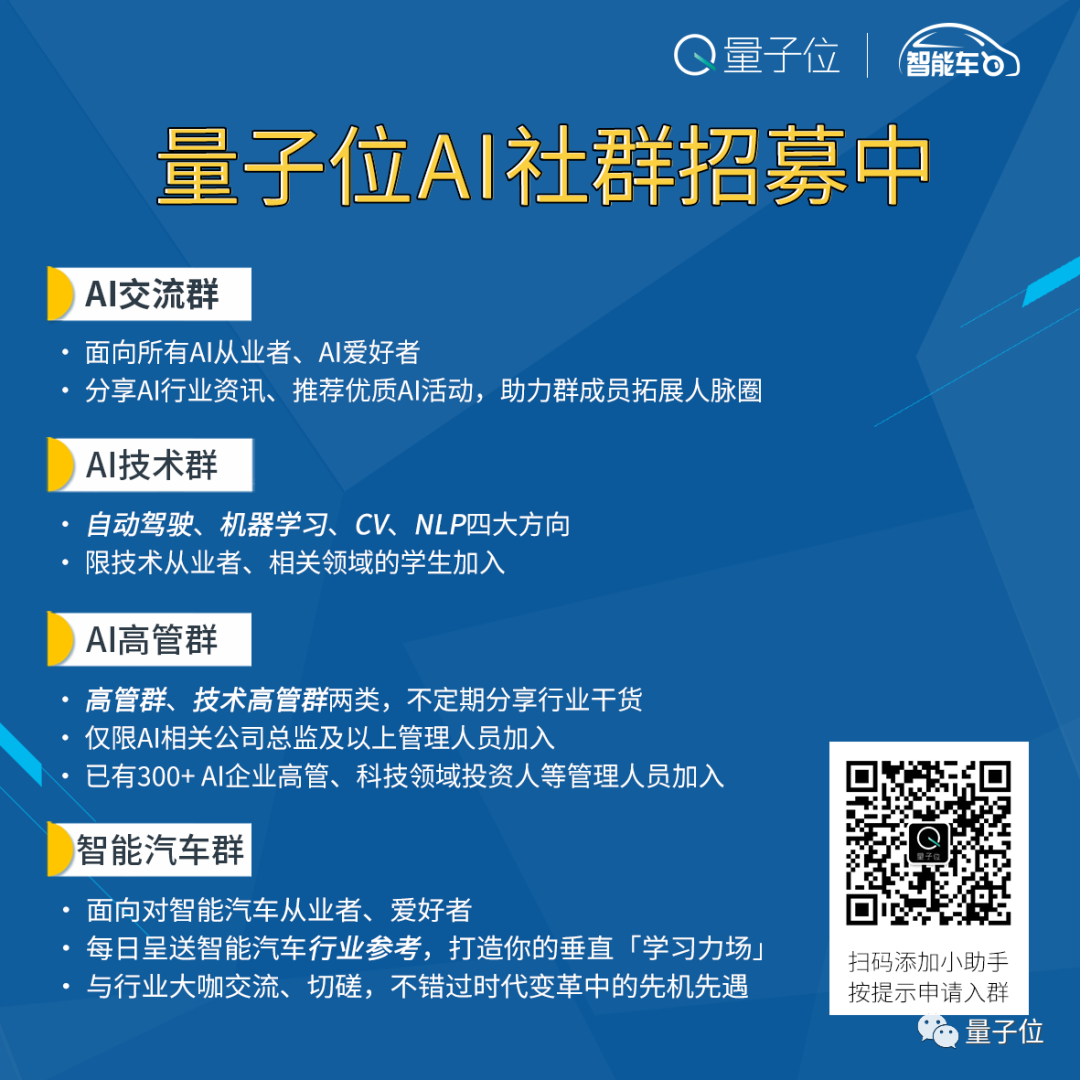 欢迎关注人工智能、智能汽车的小伙伴们加入我们,与AI从业者交流、切磋,不错过最新行业发展&技术进展。