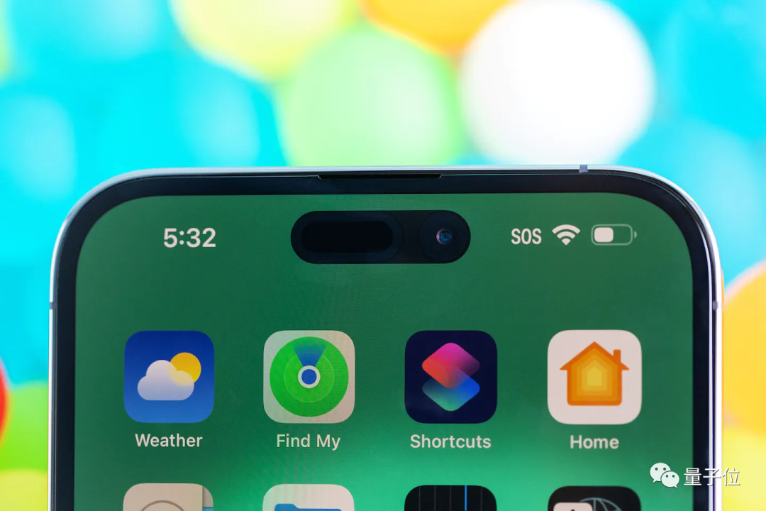首先讲讲最受关注的灵动岛。光线条件比较好的情况下,灵动岛的感叹号双挖孔还是很明显的;使用黑暗模式,挖孔和黑色像素部分的一体感才比较强。